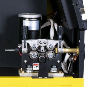 Profesjonalny podajnik 4 rolkowy zapewnia płynne podawanie drutu. Bez problemu radzi sobie z długimi uchwytami i dużymi szpulami drutu.