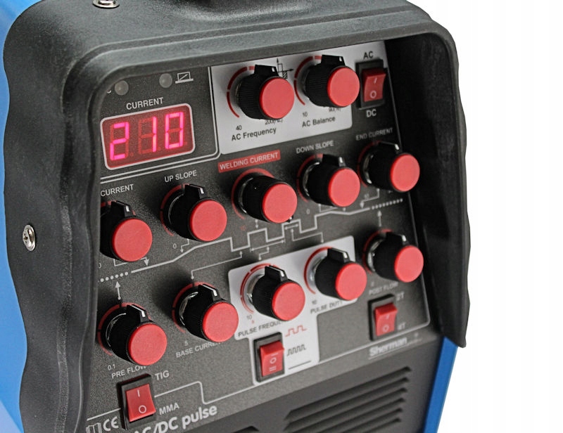 Podstawowe funkcje modelu TIG AC/DC 210 PULSE SHERMAN: