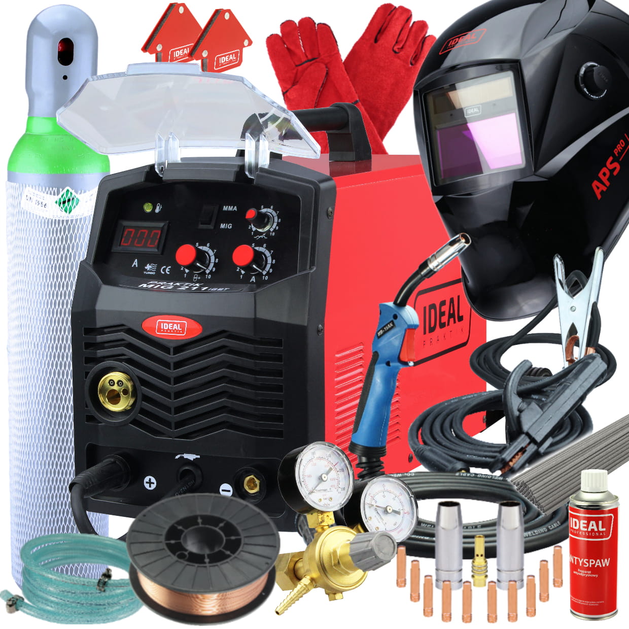 Zestaw półautomat spawalniczy PRAKTIK MIG 211 200A IDEAL gotowy do spawania